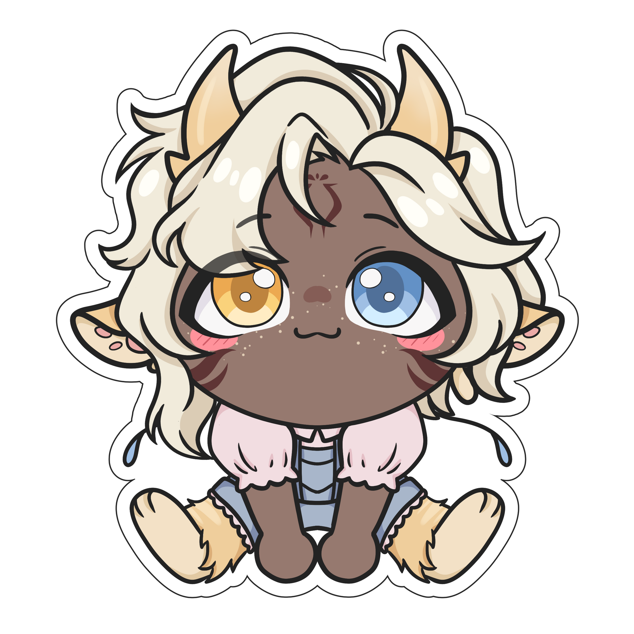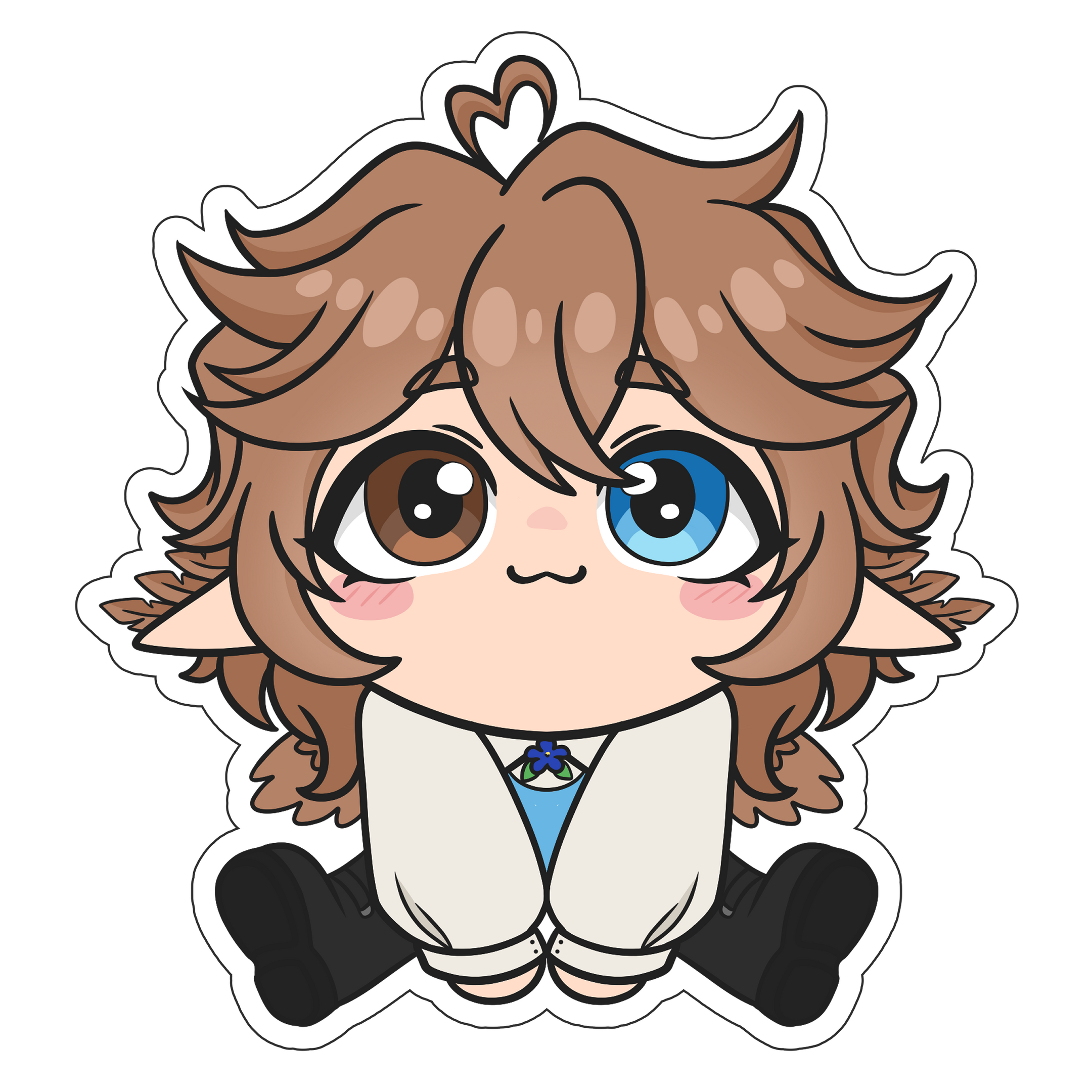Um chibi simplificado na pose sentada, personalizado com seu OC, VTuber, self insert ou personagem favorito!Inclui um desenho chibi em cores simples, com contorno branco e sem fundo.Esse YCH pode ser usado como figurinha/emoji para Discord e para uso pessoal sem fins lucrativos, como adesivos e chaveiros (mas não tem 300 DPI, o tamanho ideal para impressão).Preço: R$ 20+R$ 5 para designs complexos/detalhes extras